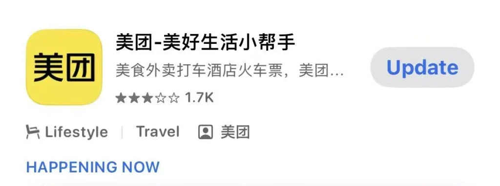 Meituan (美团)“Everything app”—food, hotels, movies, bike-sharing, restaurant reviewsChinese only